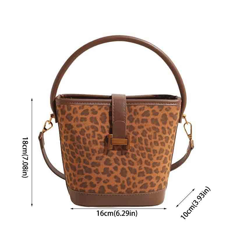 Women's retro niche leopard print crossbody bag suede bag versatile casual hand-held bucket bag