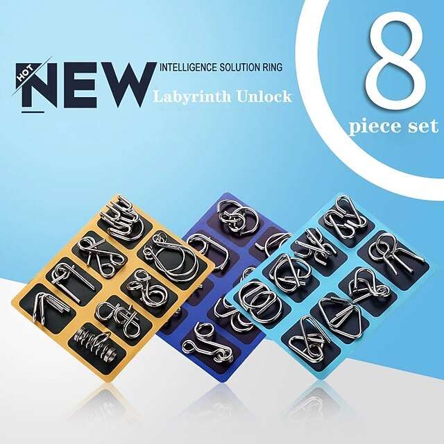 sought-after ! 8PCS/Set IQ Metal Puzzle Brain Teaser Intelligence Solution Ring Montessori Puzzles for Children Adults Anti-Stress Fidget Toy